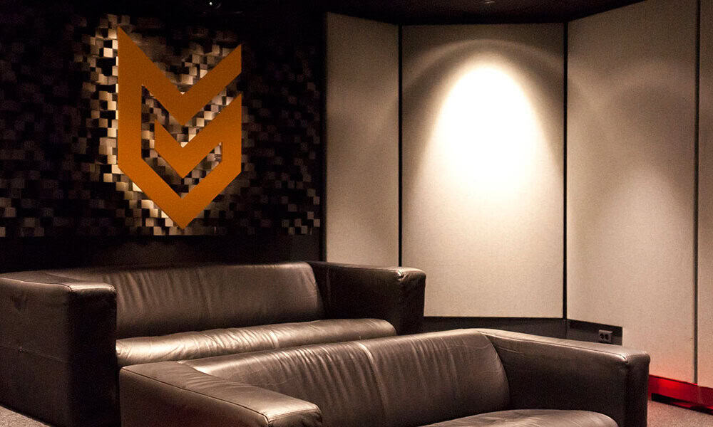 Arjan Brussee en Hermen Hulst waren heel duidelijk in hun opdracht: “wij willen een ruimte om in te ‘knallen’.” U denkt dan waarschijnlijk, dat is niet zo moeilijk. Neem een paar flinke speakers en een dikke sub, een versterker van hetzelfde formaat en draai maar open! Alleen geniet de rest van de werkvloer dan ongewenst mee. En dat is niet de bedoeling. In het gebouw waar Guerrilla Games tegenwoordig is gevestigd, ‘The Bank’ in hartje Amsterdam, wordt met zo´n 200 mensen op 3.000 m2 gewerkt aan de succesvolle ´Killzone-serie’. Het mag dus niet zo zijn dat wanneer er een presentatie gegeven wordt in de cinema, de aangrenzende werkplekken belast worden met het geluid van bommen en granaten.
